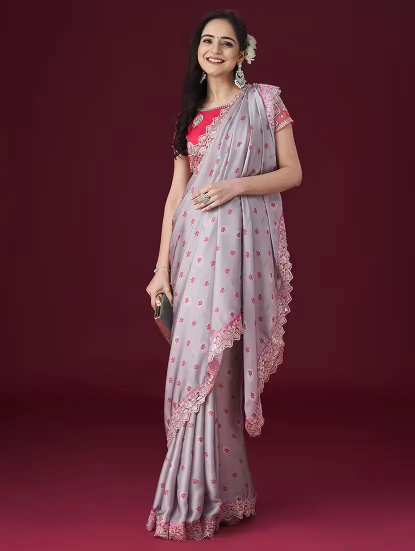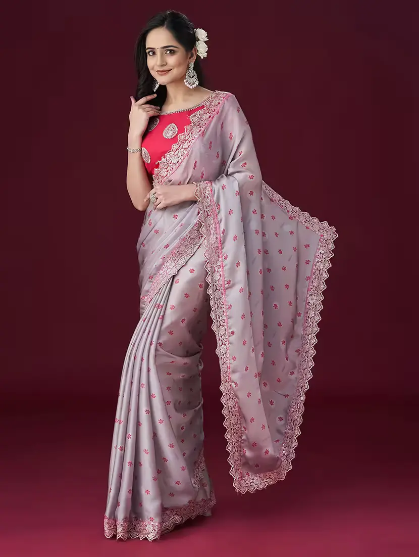 Grey and pink saree\